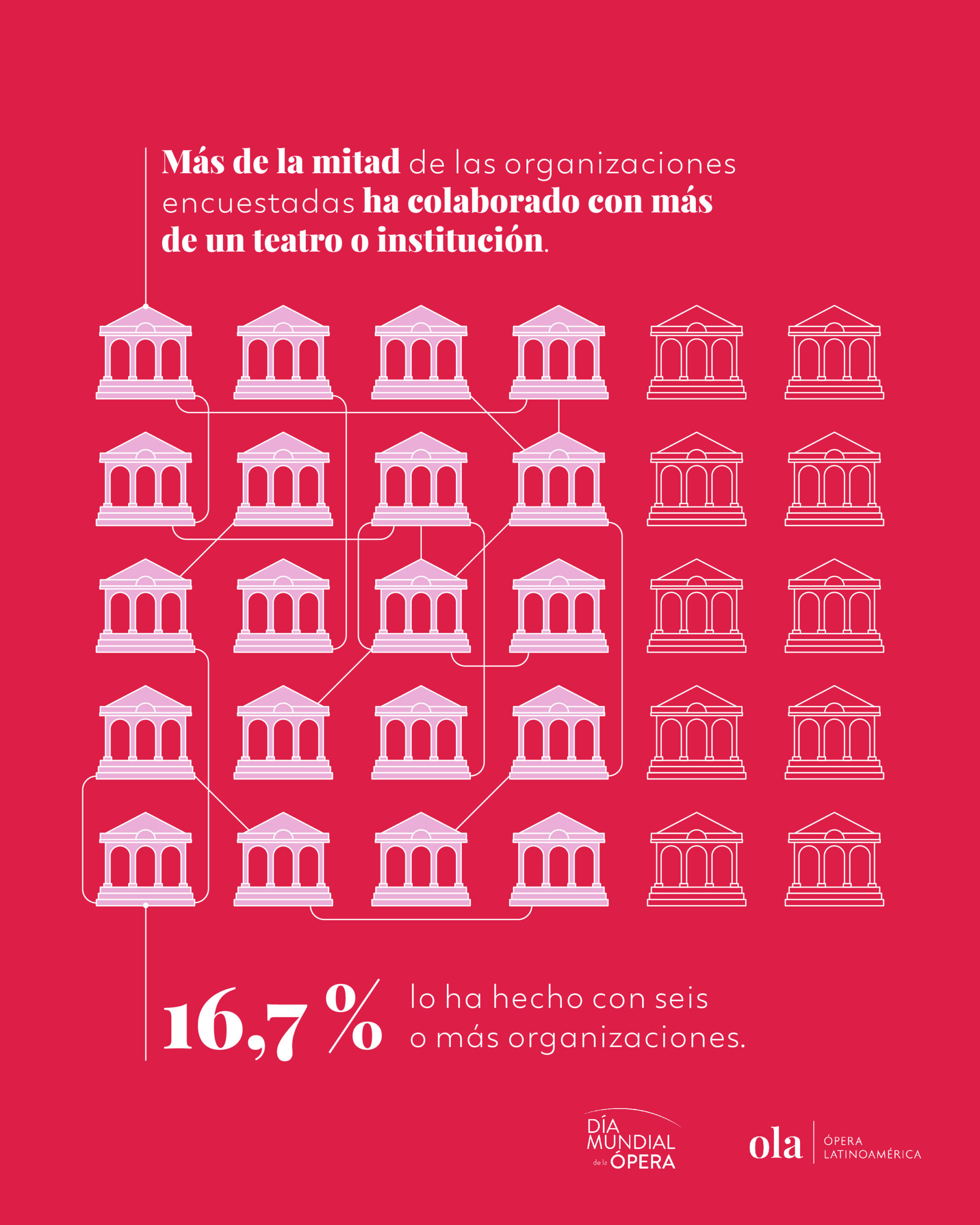 Asimismo, más de la mitad de las organizaciones encuestadas ha colaborado con más de un teatro o institución y el 16,7 por ciento lo ha hecho con seis o más organizaciones.