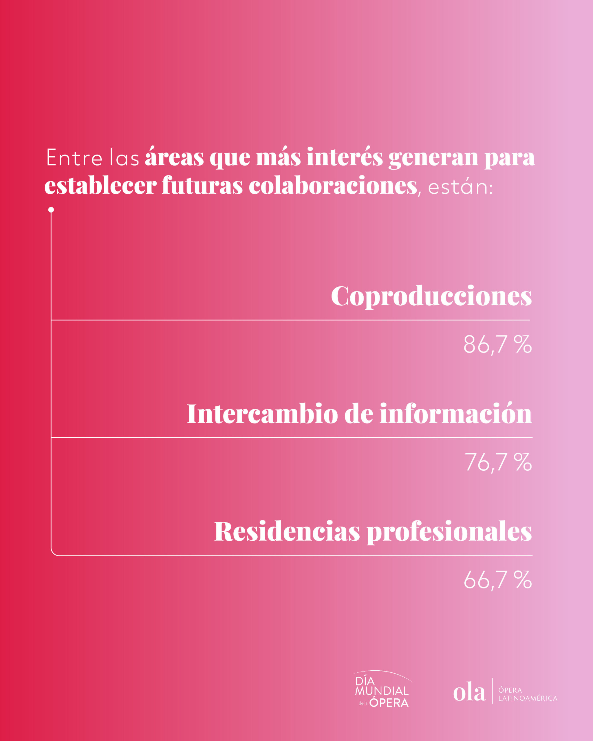 En el marco del Día Mundial de la Ópera 2025, desde Ópera Latinoamérica (OLA) celebramos las acciones de colaboración que han sido impulsadas por los teatros, festivales y compañías que integran nuestra red. Coproducciones, residencias artísticas y profesionales, colaboraciones transatlánticas y más son algunas de las acciones destacadas que presentamos en los resultados de la encuesta ¿Te interesa colaborar con teatros de OLA?, respondida entre mayo y junio de 2025 por algunas organizaciones asociadas a OLA.