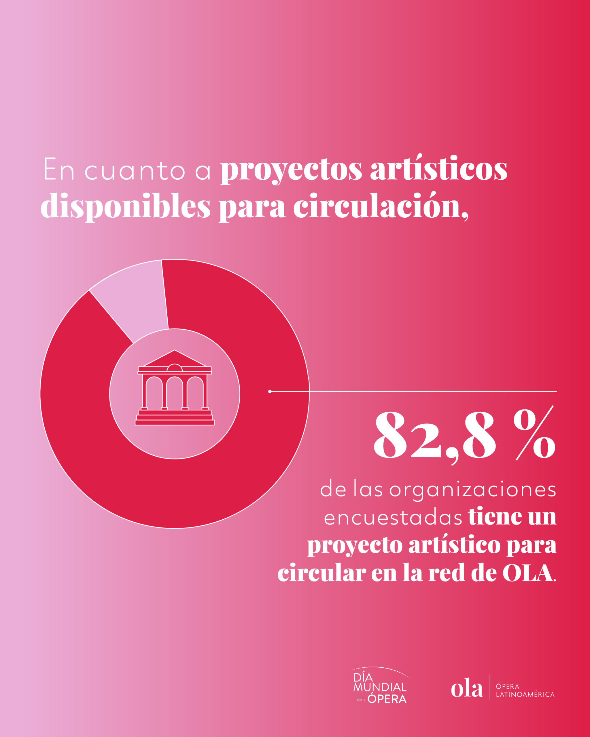 En cuanto a proyectos artísticos disponibles para circulación, 82,8 por ciento de las organizaciones encuestadas tiene un proyecto artístico para circular en la red de OLA.
