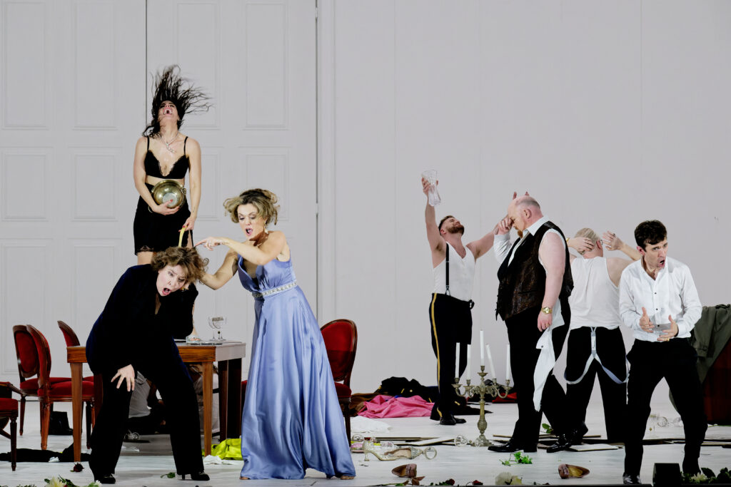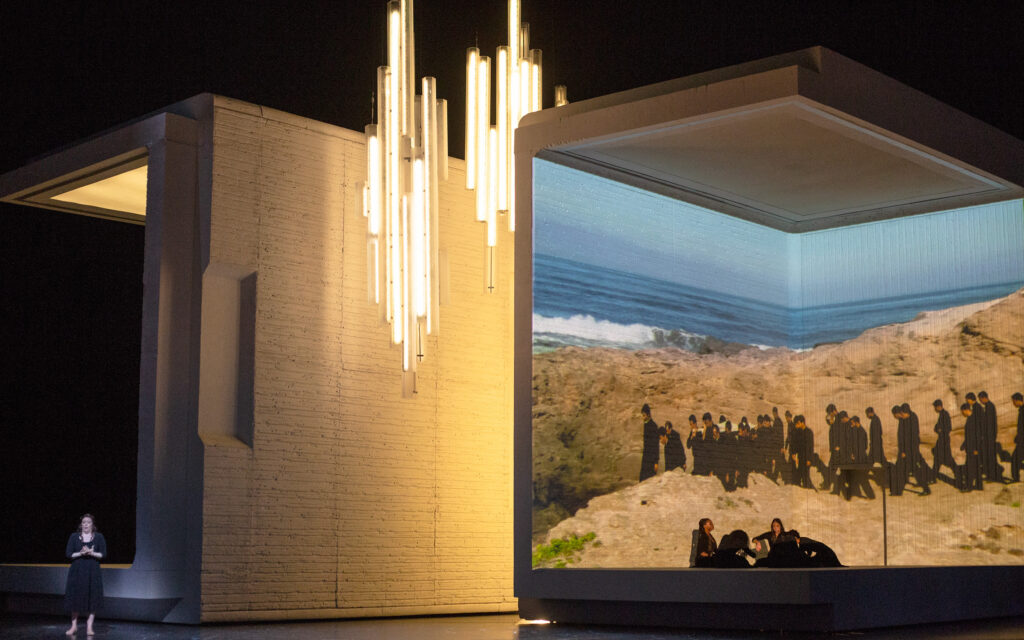 La celebrada producción de Calixto Bieito, creada para el Gran Teatre del Liceu a partir de la propuesta de la Opéra national de Paris, sitúa la acción en un entorno burgués aparentemente ordenado que se descompone progresivamente, revelando la fragilidad de sus códigos y la irrupción de una fuerza invisible que pone en crisis el sentido mismo de lo sagrado.